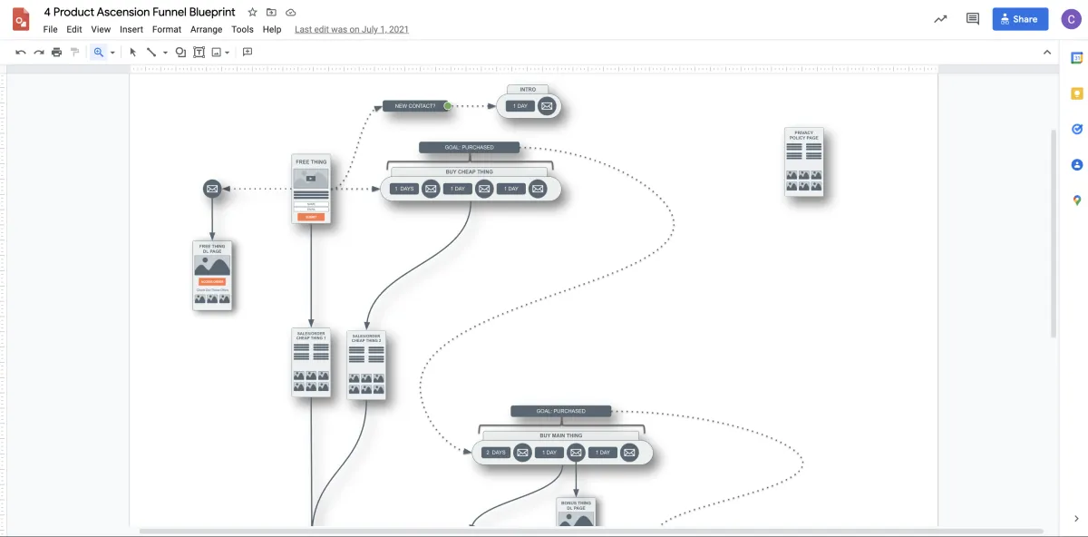 You'll have quick, convenient access to the entire blueprint bank from inside the Funnel Architects App. Just select the blueprint you want to see and click to open the Google Draw file in another tab. Make a copy of your own and customize it to fit your project.